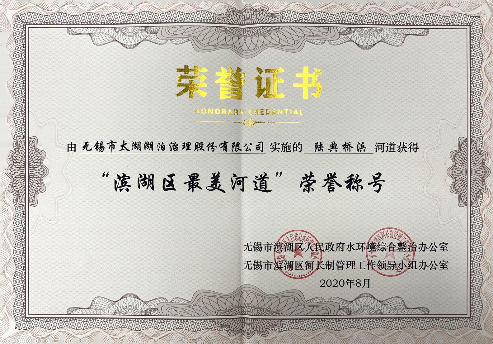 陆典桥浜河道获得“滨湖区最美河道”荣誉称号